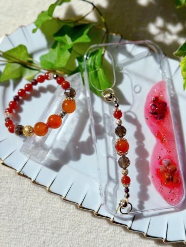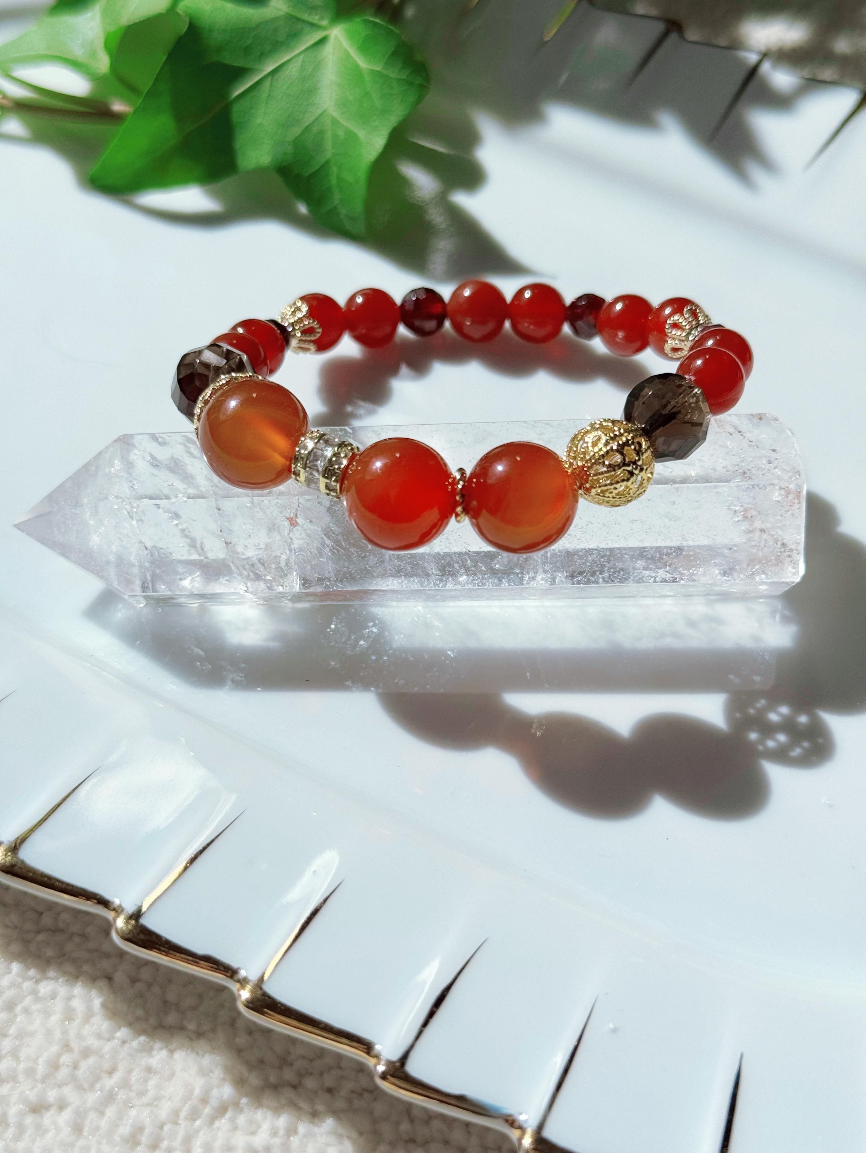 カーネリアンAAA レッドゲート スモーキークォーツAAA ガーネットAAA