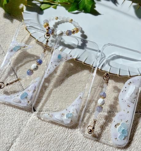 天然石とレジンアートのスマートフォンケース