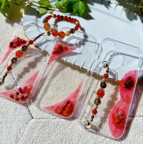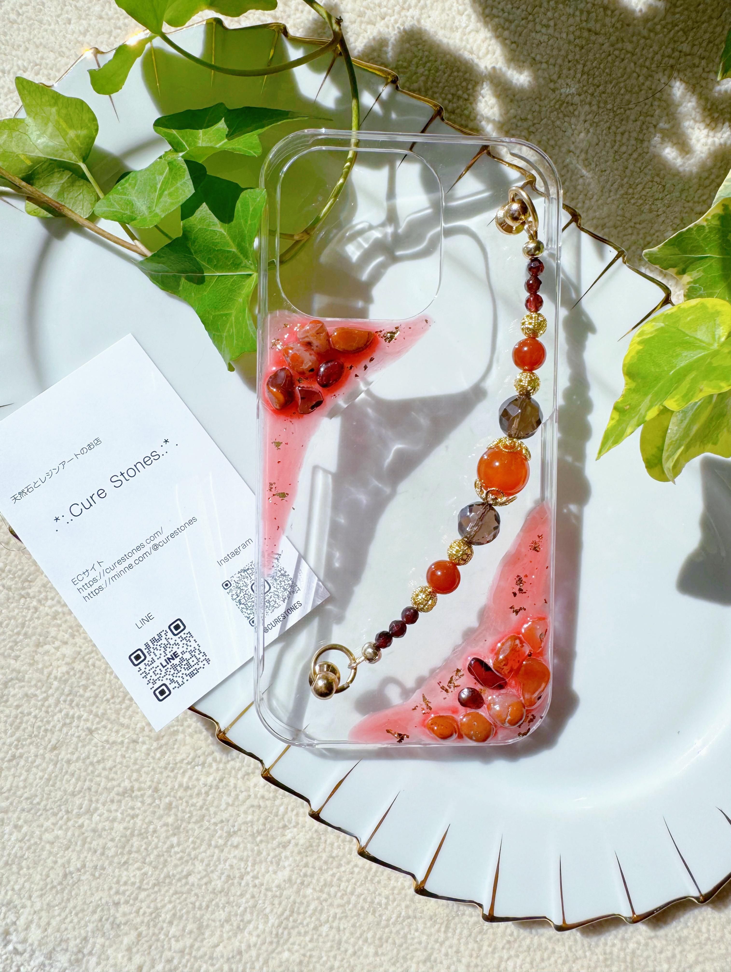 天然石とレジンアートのスマートフォンケース